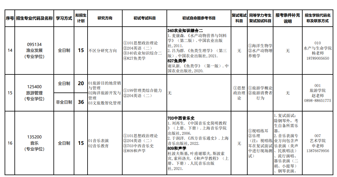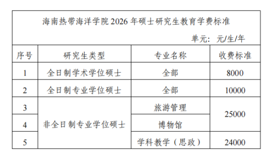 2026 年学校招生专业及各专业拟招生计划详见《海南热带海洋学院 2026 年硕士研究生招生专业目录》(以下简称招生专业目录)。