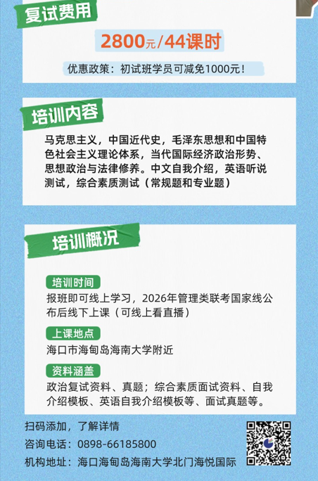 2025年海南大学MBA复试内容及分数