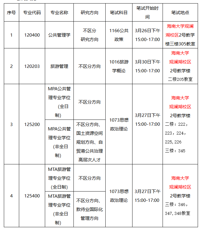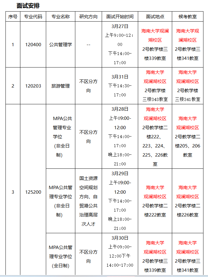 3.加试安排:时间:2026年3月27日上午9:00-12:00(海南大学观澜湖校区2号教学楼二楼226教室)。