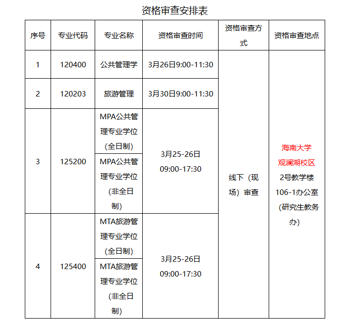 学院招生办电话:0898-66193873(旅游管理学硕120203)、66278209(公共管理学硕120400)、66292663(MPA公共管理专硕125200)、66183211(MTA旅游管理专硕125400)。