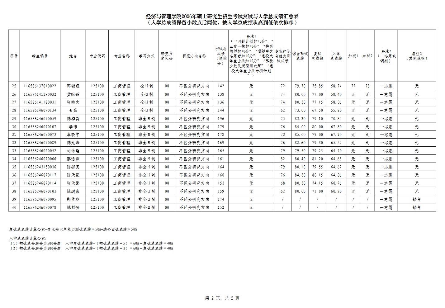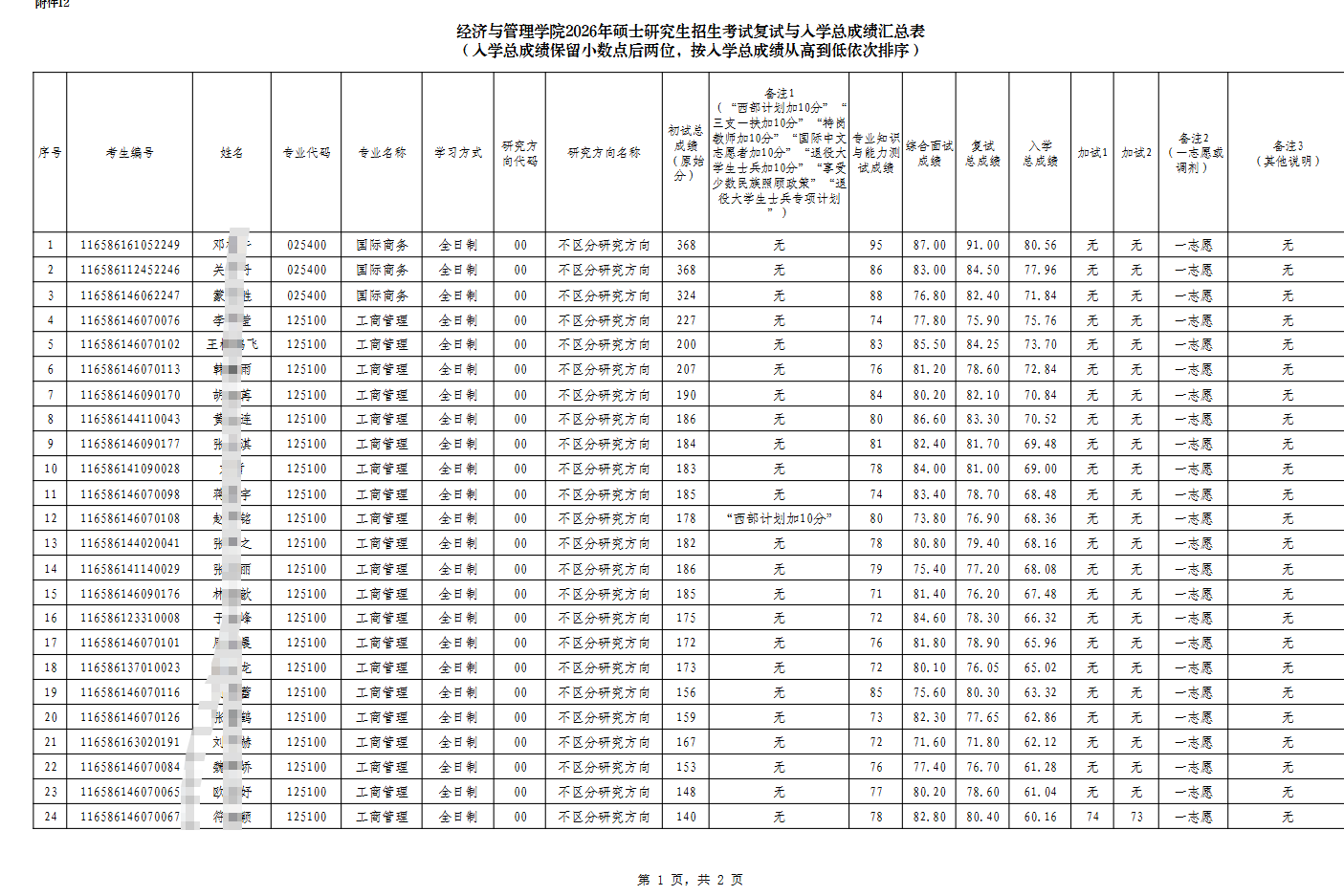 来源:经济与管理学院2026年硕士研究生招生考试复试与入学总成绩汇总表(一志愿)公示