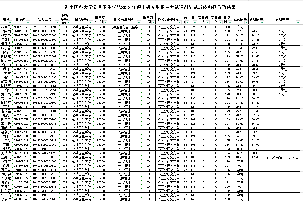 来源:海南医科大学2026年硕士研究生招生考试调剂考生复试成绩和拟录取结果公示(第二批)